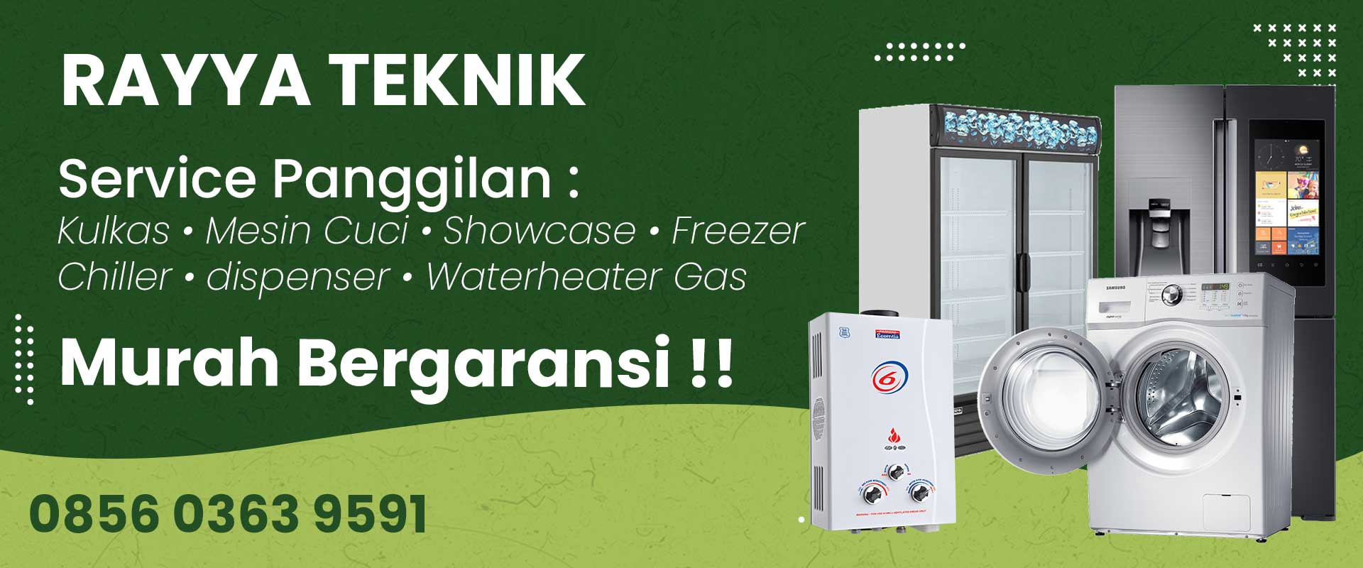 Rayya Teknik merupakan penyedia jasa service panggilan yang melayani wilayah Bandung dan sekitarnya. Kami melayani service panggilan barang elektronik seperti kulkas, mesin cuci, freezer, chiller, showcase, dispenser dan water heater gas. Service panggilan merupakan solusi untuk anda yang sibuk tidak bisa mencari tempat service. Cukup dengan menghubungi kami, anda bisa mendapatkan jasa service tanpa keluar rumah. Tentu nya service panggilan dapat menghemat banyak waktu anda yang berharga. Rayya Teknik memiliki pengalaman lebih dari 10+ tahun di bidang service panggilan. Dengan pengalaman yang kami miliki, dapat di pastikan layanan service tidak perlu di ragukan lagi.